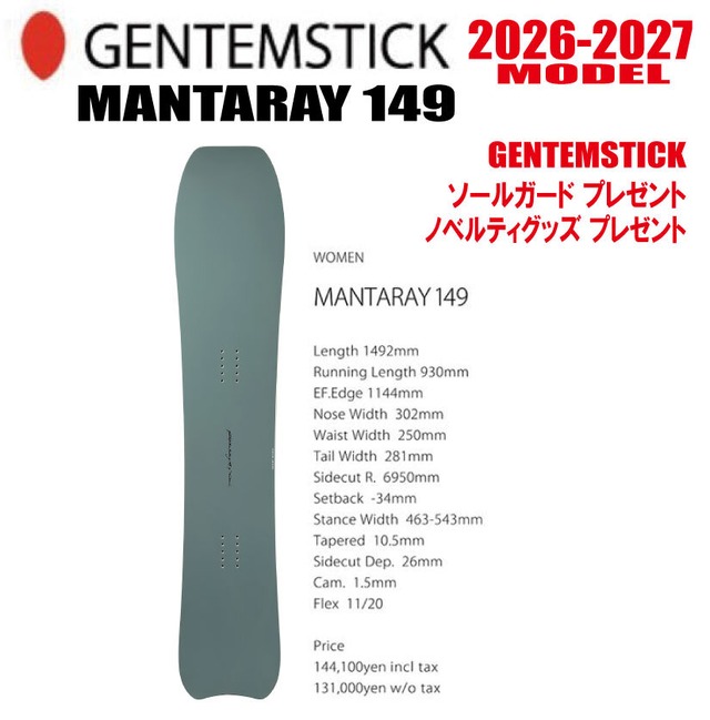早期予約 26-27モデル MANTARAY 149 【選べる特典2点】送料無料