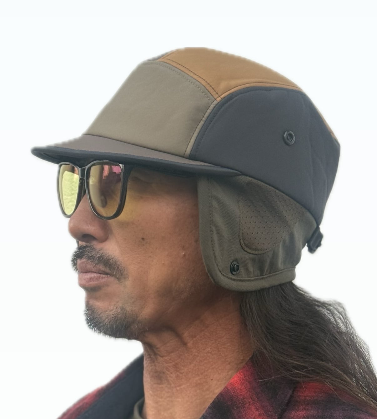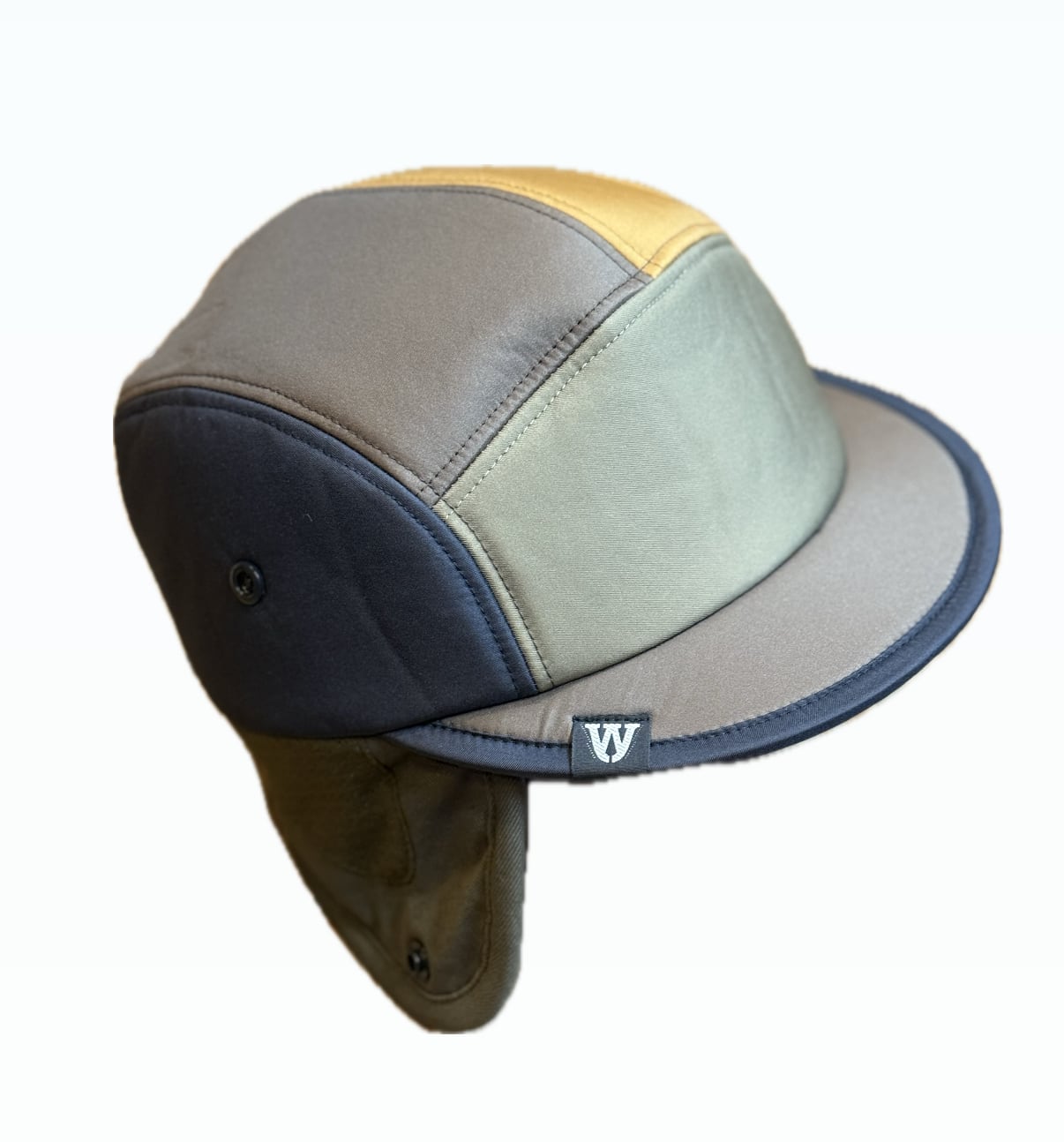 ディティール面では、PLAY前後の道中やバックカントリーでのハイクアップ時に耳当て部分を折り上げてスナップボタンで固定出来るようにしました。