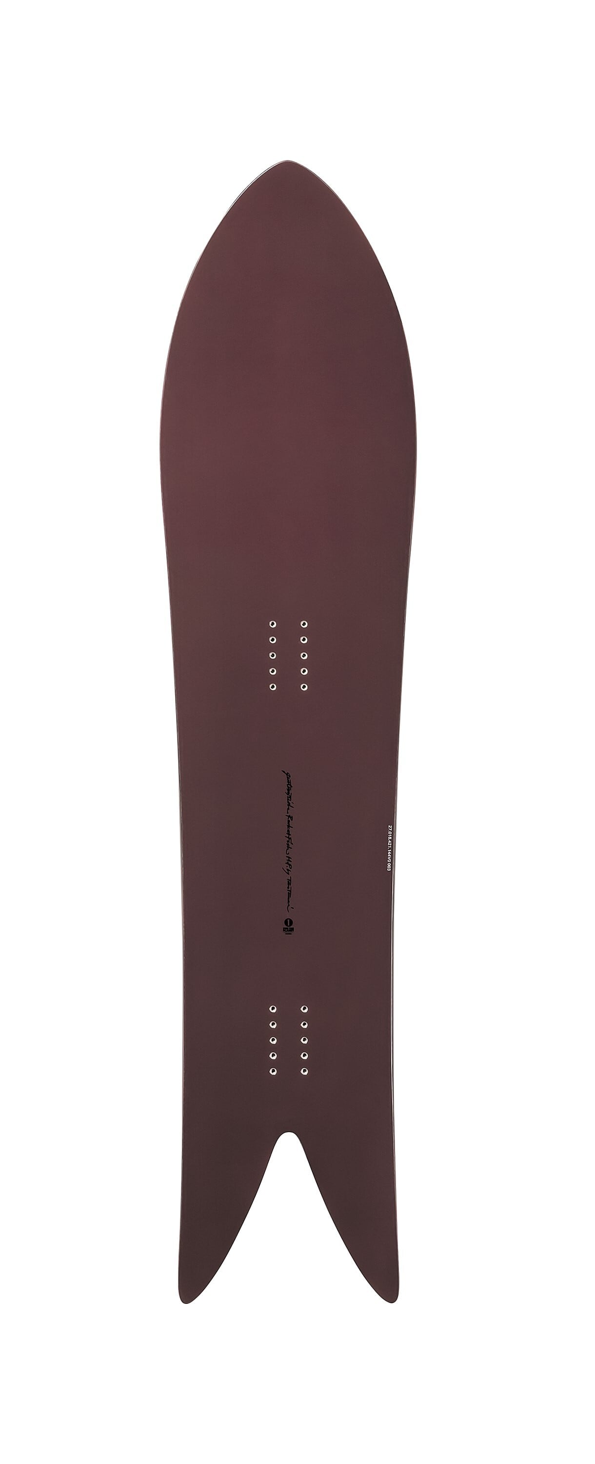 鋭角でアグレッシブなカーヴィングターンが特徴の"ROCKET FISH"だが見た目の印象とは裏腹な性能は意外にもテーパーの少ない寸胴なデザインから生まれている。一方「ROCKET FISH HIGH PERFORMANCE」と名付けられたこのモデルはROCKET FISHより僅かに細身で、テーパーを持たせる事によってより様々な状況下でのコントロール性を上げている。踏み込めば良く曲がり、優しく乗れば滑らかにクルーズする。幅を持たせているがテーパーとのバランスと深いスリットの為に軽量ライダーのパウダーボードとしても最高のバランスだ。