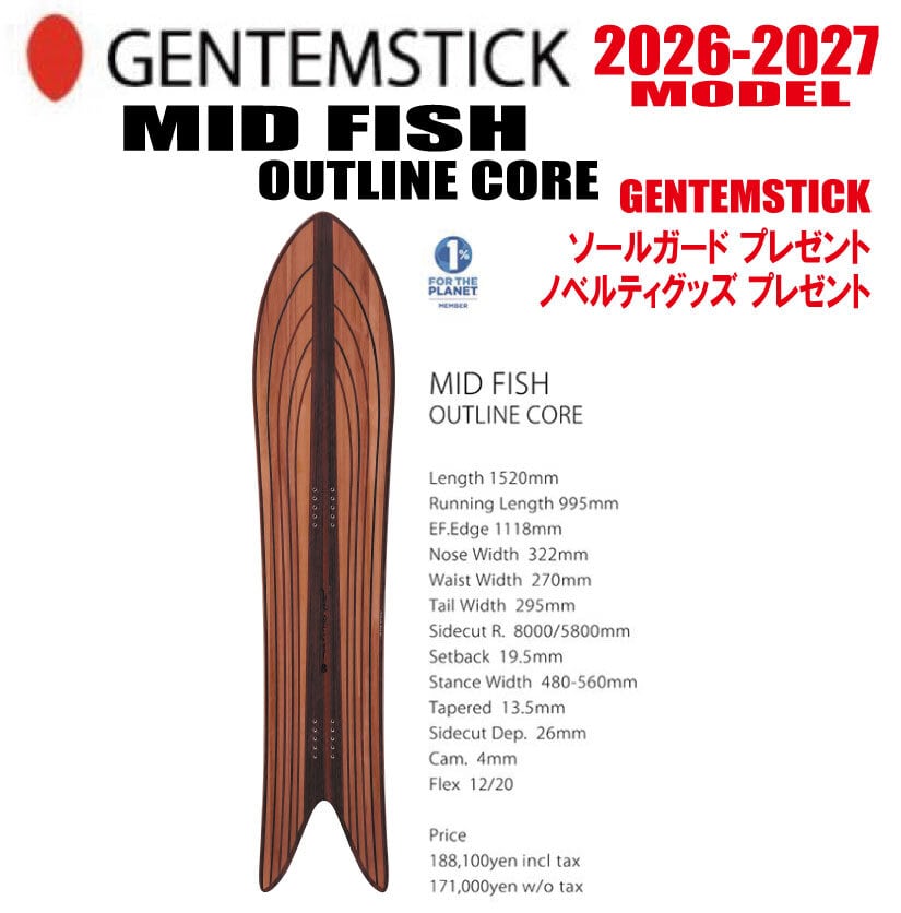 ファーストオーダー締め切り3月2日 早期予約 26-27モデル MID FISH OUTLINE CORE 【選べる特典2点】送料無料