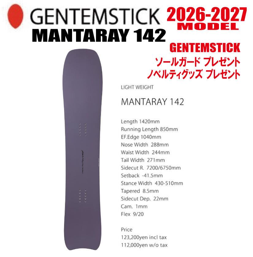 早期予約 26-27モデル MANTARAY 142 【選べる特典2点】送料無料