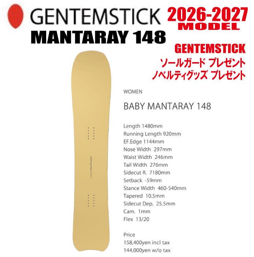 早期予約 26-27モデル BABY MANTARAY 148 【選べる特典2点】送料無料