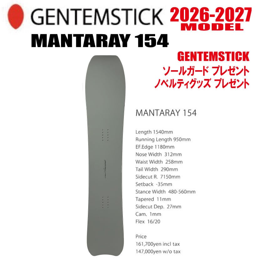 早期予約 26-27モデル MANTARAY 154 【選べる特典2点】送料無料