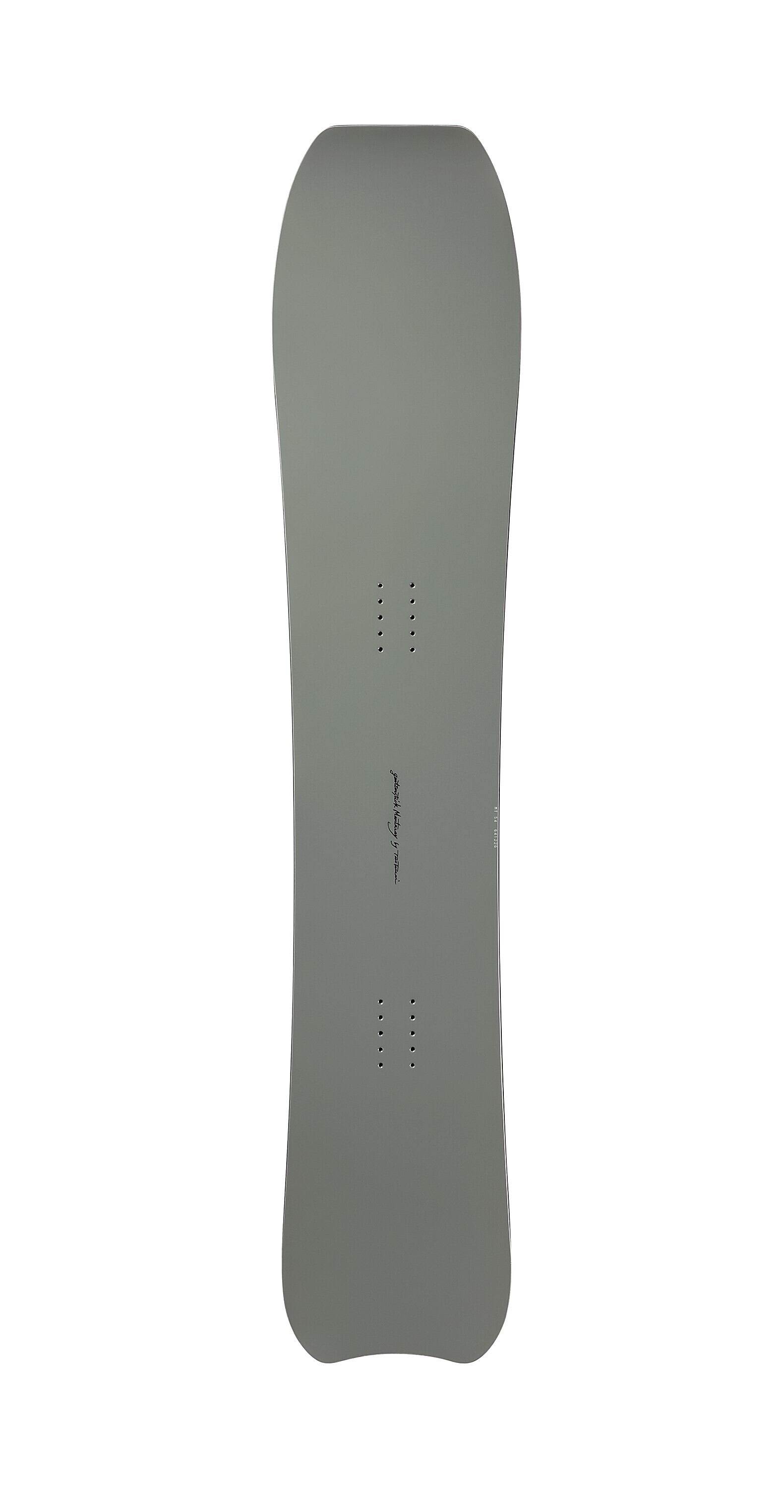 1度目にしたなら、深く印象に残ってしまう個性的なアウトライン。ビッグスクエアーノーズにハーフムーンテール。312mmの最大幅、258mmのウエストと、1540mmのレングス。ボトム形状は勿論、斜面との抵抗が極端に少ないロッカーとキャンバーシステム。面で捉えている時はキャンバーを足裏で感じながら、いざ3次元地形に入り込むと水を得た魚の様にルースな動きを見せる。ノーズをパウダーに沈ませ、全ての面を使ってパウダーの中からオーリーをかます。サイドにスライドしながらテールを噛ませ、ノーズをフォールラインに送り込む。リップで足首を伸ばしながらグライド。サイドカーブの強さと相まって、絶対スピードより体感スピードにチューニングされ、どの方向にも自由自在な挙動を見せる。