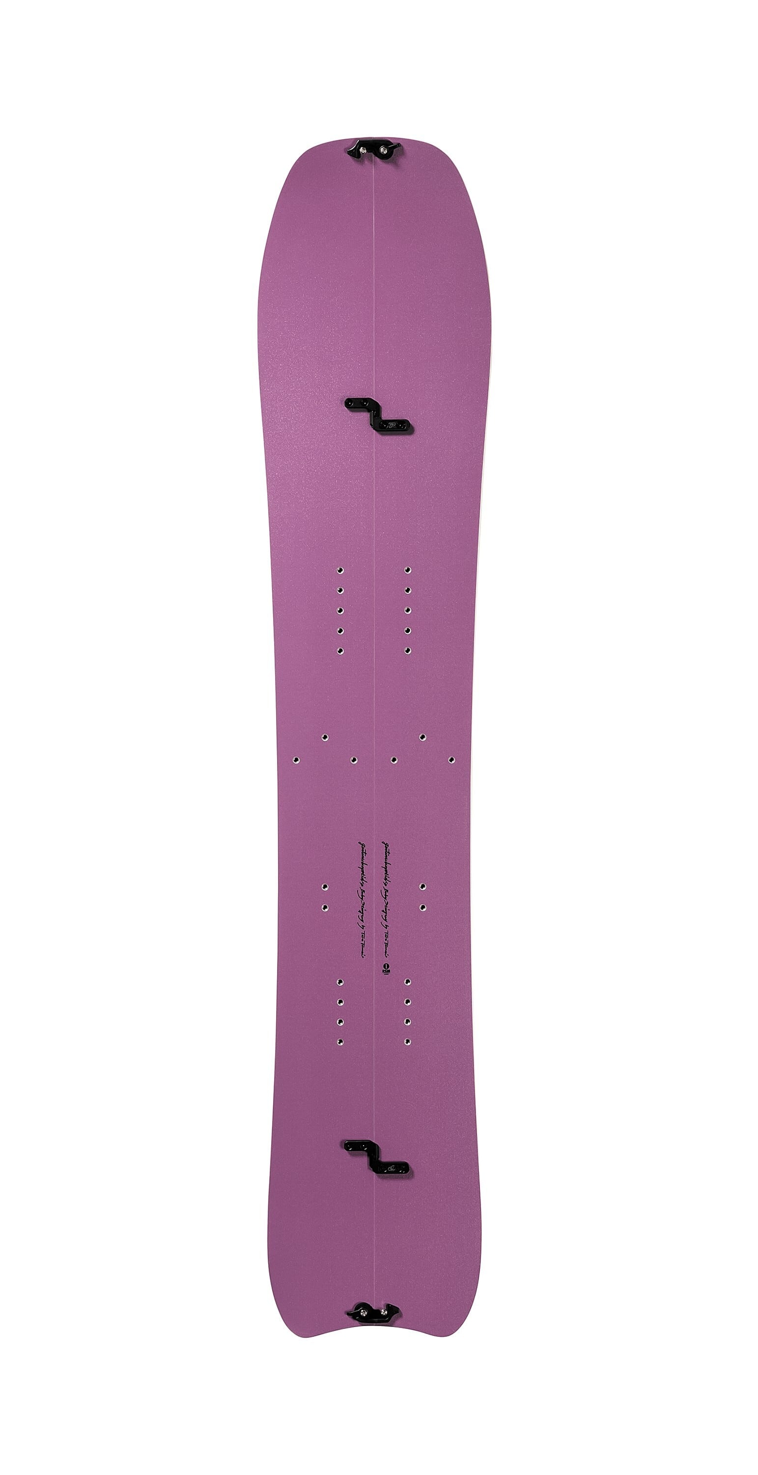 ウッドコア、不等厚、トップシート素材と、そのすべてにおいてスプリットボード用に最適化し、そのうえでベースとなるモデルの性格を最大限引き出す設計となっています。