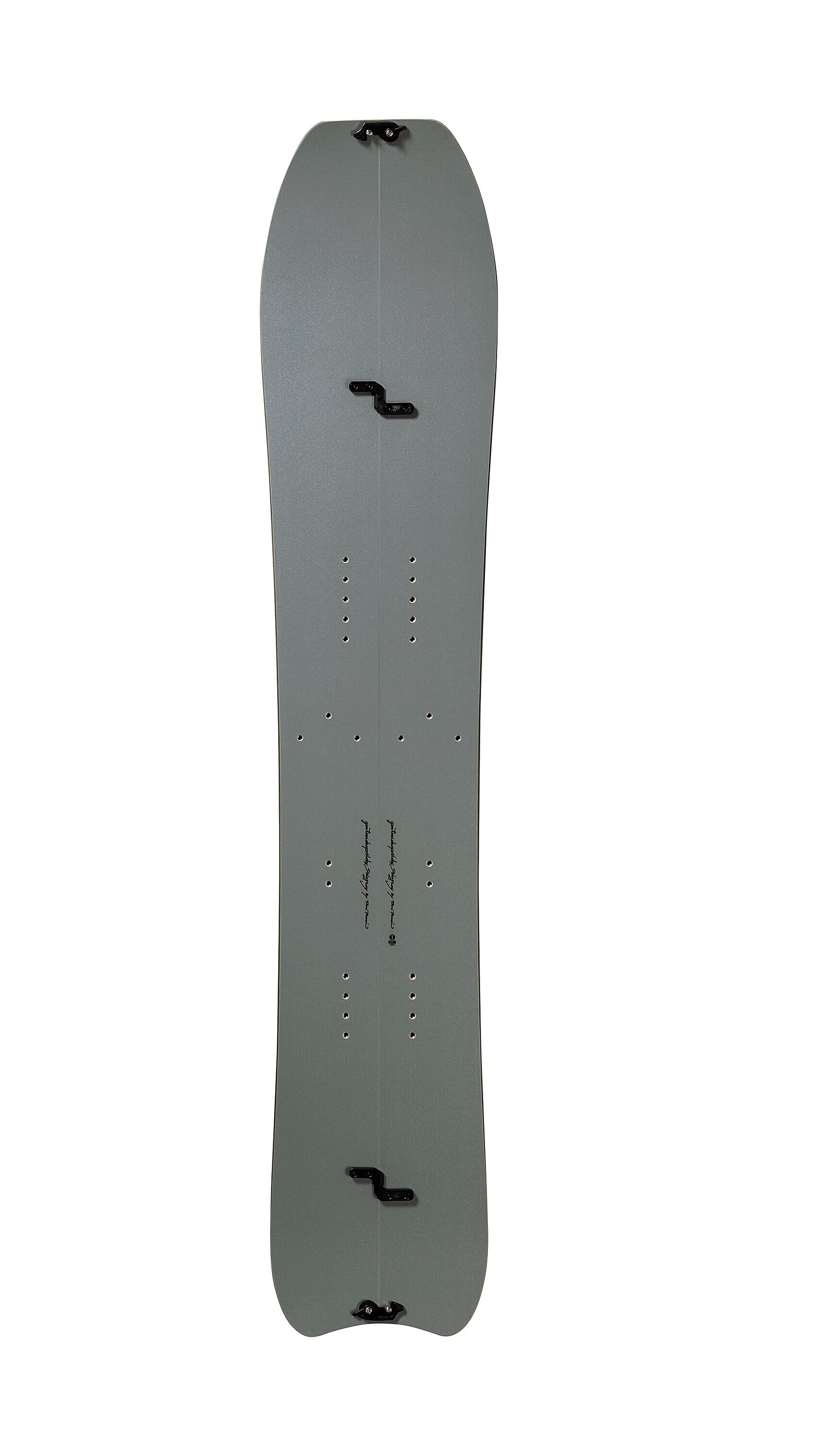ウッドコア、不等厚、トップシート素材と、そのすべてにおいてスプリットボード用に最適化し、そのうえでベースとなるモデルの性格を最大限引き出す設計となっています。