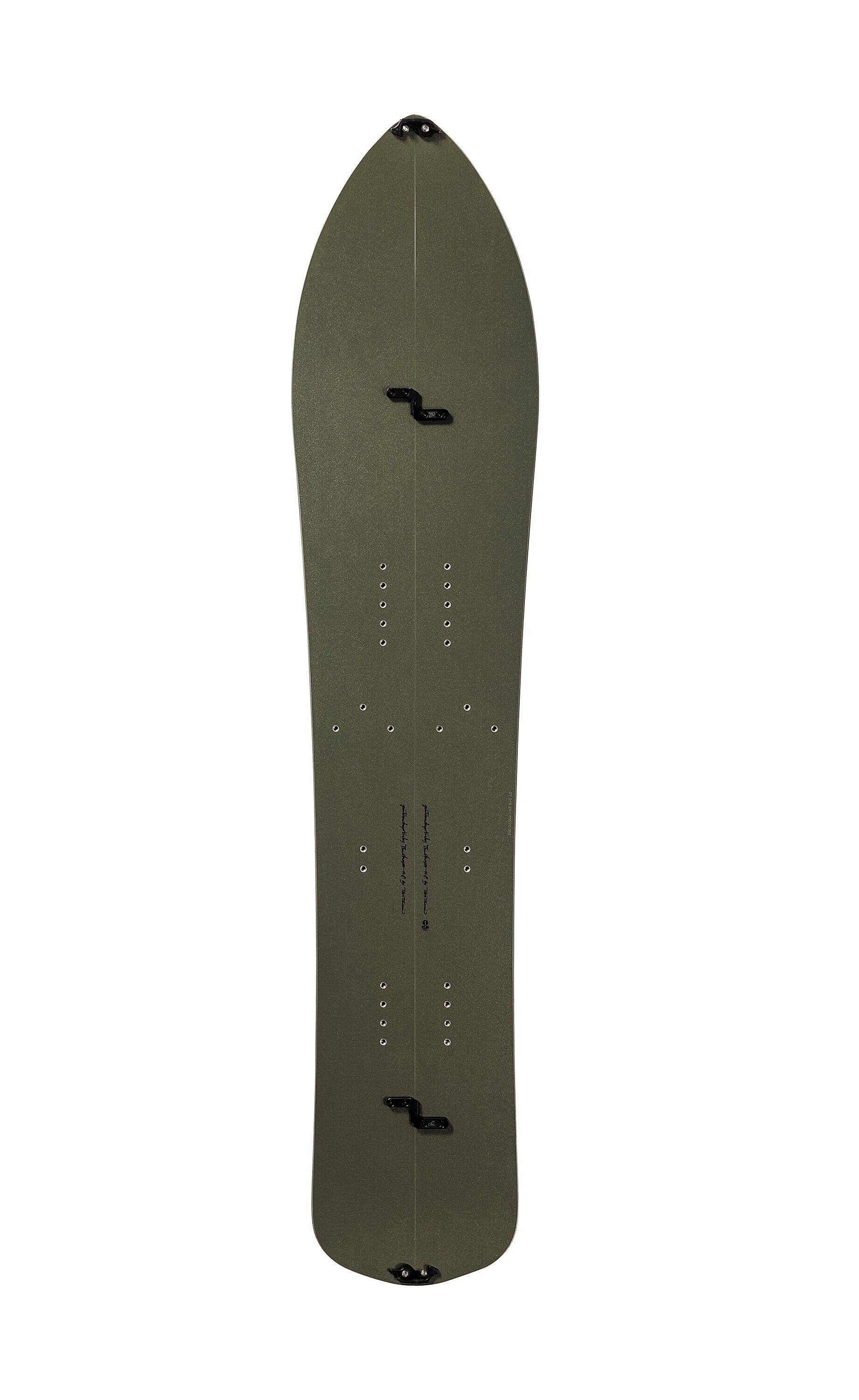 ウッドコア、不等厚、トップシート素材と、そのすべてにおいてスプリットボード用に最適化し、そのうえでベースとなるモデルの性格を最大限引き出す設計となっています。