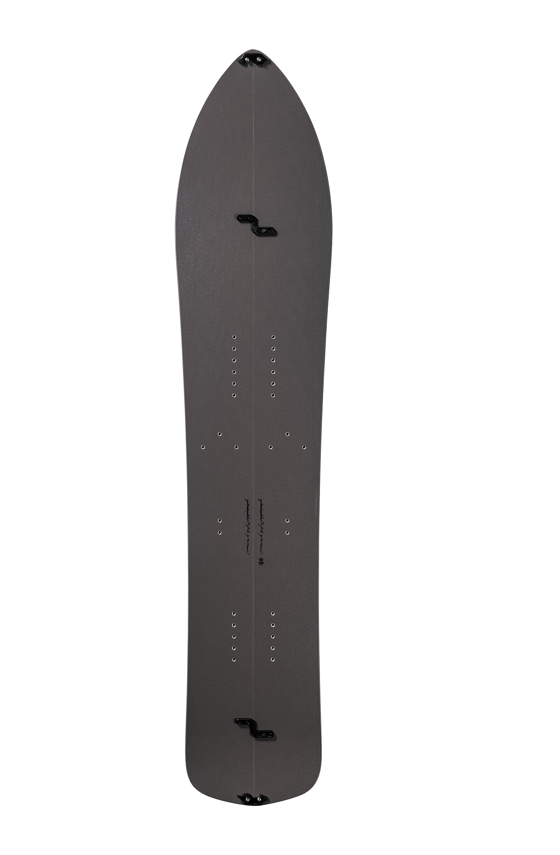 ウッドコア、不等厚、トップシート素材と、そのすべてにおいてスプリットボード用に最適化し、そのうえでベースとなるモデルの性格を最大限引き出す設計となっています。