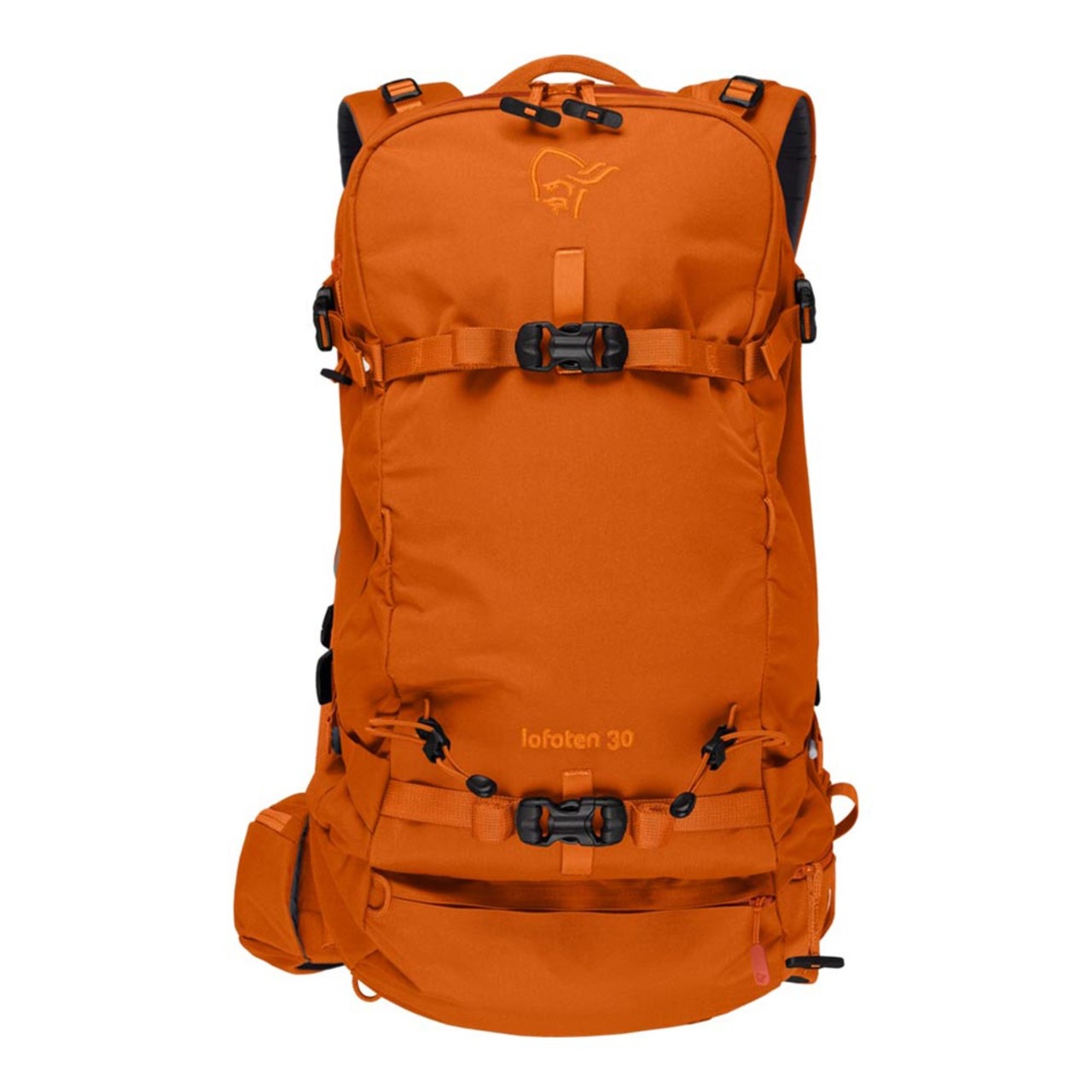 耐久性が高くバランスの良いバックカントリースキー&スノーボード用バックパックです。一体型の軽量アルミフレームと熱成形による背面パッドによって、ライディング中のバランスに優れます。前面にはオーガナイザー付きのスノーセイフティギアポケットとスノーボードキャリー、サイドコンプレッションはAフレームでのスキーキャリーを兼ねます。スキーやボードを装着した状態でメインの荷室にアクセスしやすい背面エントリー仕様。ボトムにはロープやクランポンを収納できる別コンパートメントがあり、サイドファスナーから素早くアクセスできます。トップにはゴーグルが2つ収納するのに十分な容量を持つゴーグルポケット、ヒップベルトの左右にはそれぞれギアループとファスナーポケットが付きます。内部はハイドレーション用ポケットとメッシュポケット付き。バックカントリーで映えるアースカラーにも注目です。